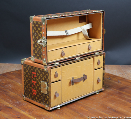 Secretary trunk with drawers and typewriter stand for writers like Ernest Hemingway and Françoise Sagan or simple trunk-library to carry complete collections like the eleventh edition of the Encyclopedia Brittania, the trunk-library is already present in the Louis Vuitton catalog of 1914 and will exist in various forms.