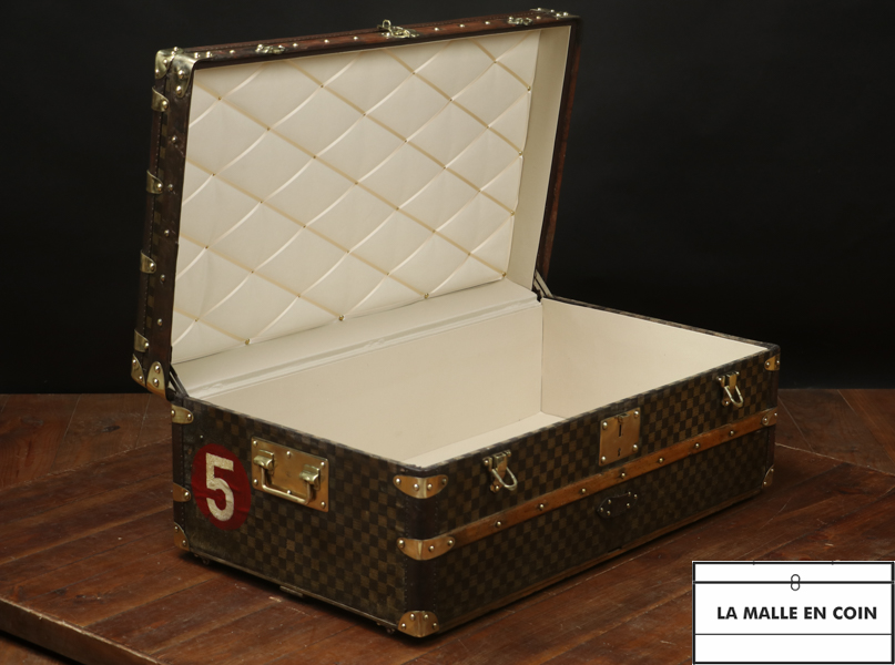 In the 1880s, trunk makers evolved their canvases, and more particularly from stripes to checkerboards. Each trunk maker had its checkerboard, with specific dimensions, horizontal or vertical "rice grains", numbers of grains per checkerboard also variable, the richness of the checkerboards was interesting and allowed to recognize each brand. It was at this time that Louis Vuitton will start the LV on the nails and clasps, the address on the lock, the checkerboard "Louis Vuitton Trademark"