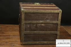 Cubic in shape with generous dimensions of 65 cm high, 64 cm wide and 60 cm deep, this trunk was specially designed to transport and protect up to six hats.
