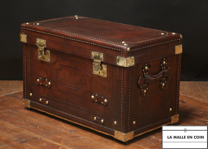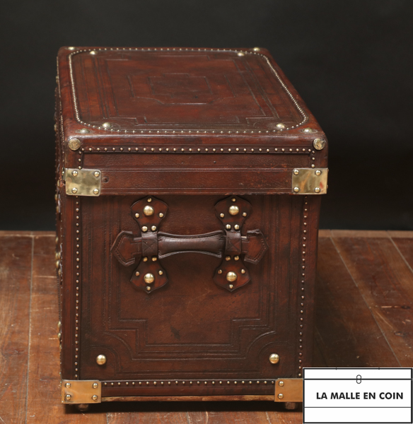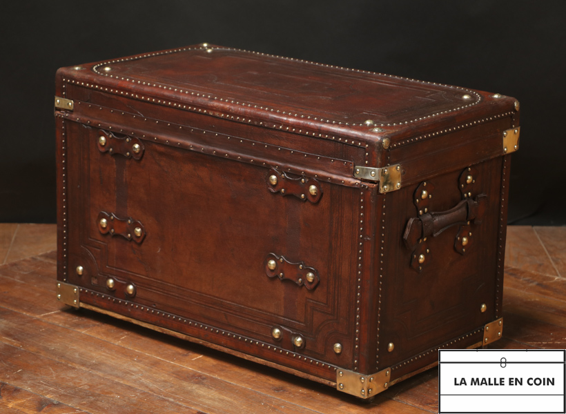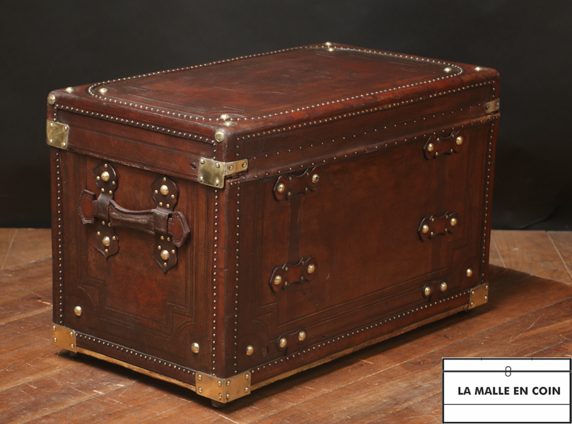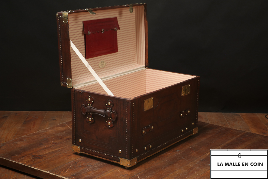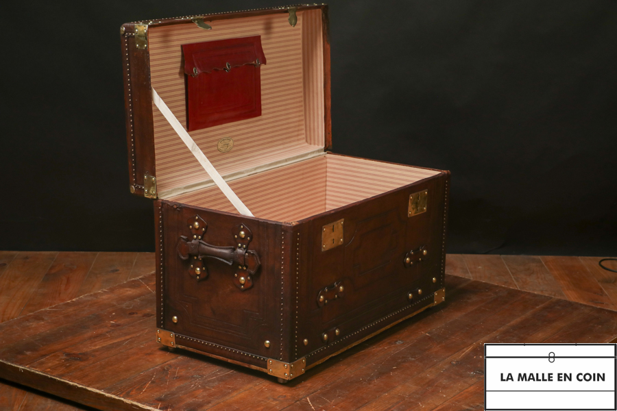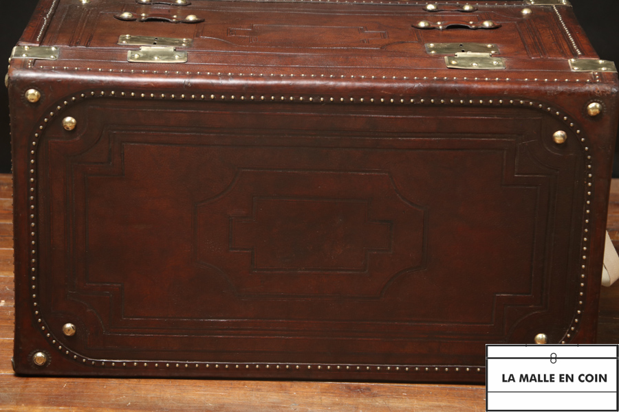 Malle courrier cuir Edison Interieur refait a neuf 2 passant sur 1 coté refait . Malle de campagne Gal Nicolas-Jean-Baptiste Bonvalet (1815-1879) Portefeuille d'origine