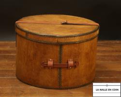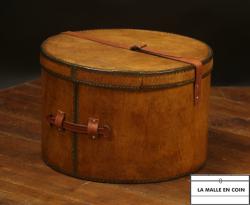 Malle a chapeau femme Bois et cuir Cuir neuf Diametre 45 cm haut 29 cm