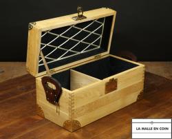 Malle plate en bois avec clef • Fût en peuplier • lattes en hêtre •...