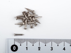 Pour les clous, pour tout ce qui est coins, lattes, équerres, les clous en laiton recuit (pour retourner les clous dans le bois) sont :