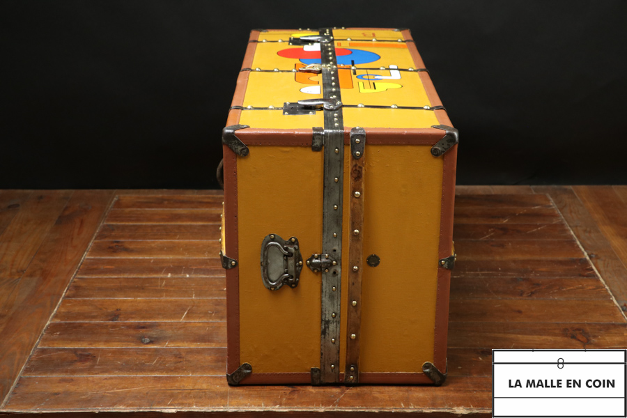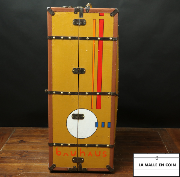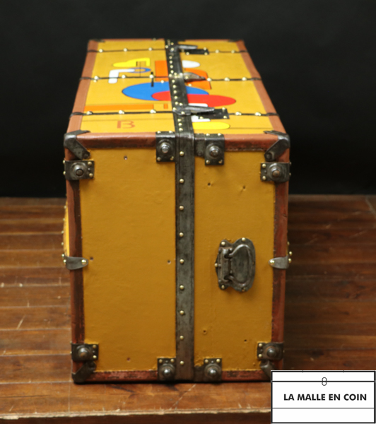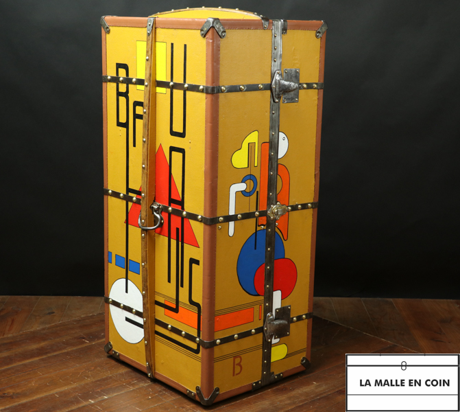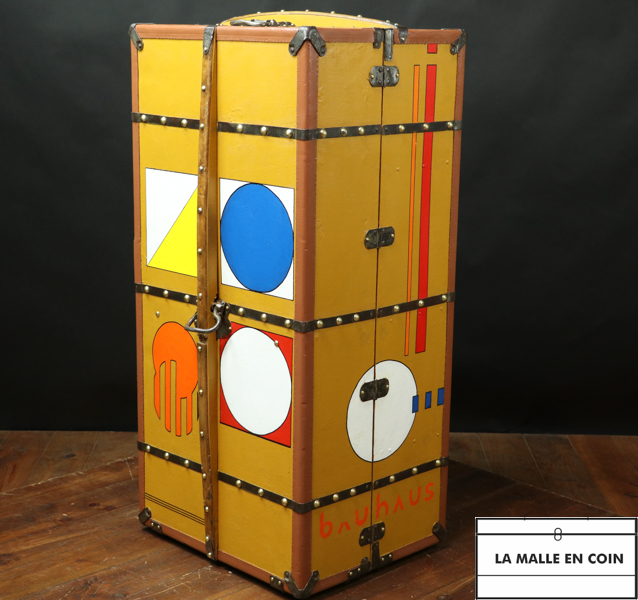 Nous avons laissé Marc, notre artiste maison, réinterpréter cette malle des années 20 dans le style Bauhaus.
