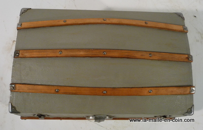 Malle de poupée, de couleur gris perle VENDUE SOLD Lattes de renforts en bois Poignées cuir d'origine